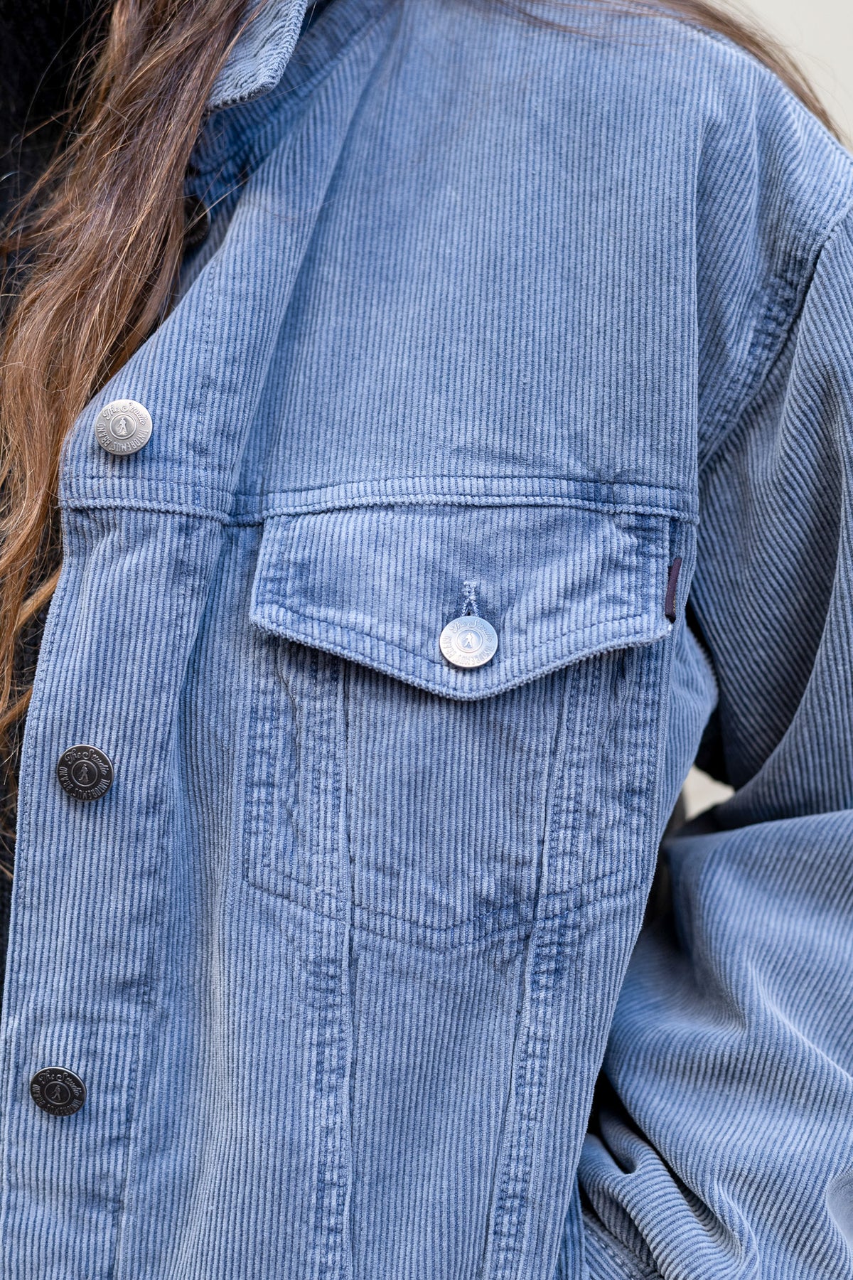JEAN, es una chaqueta estilo trucker confeccionado con 80%  algodón, 20% algodón reciclado preconsumo.