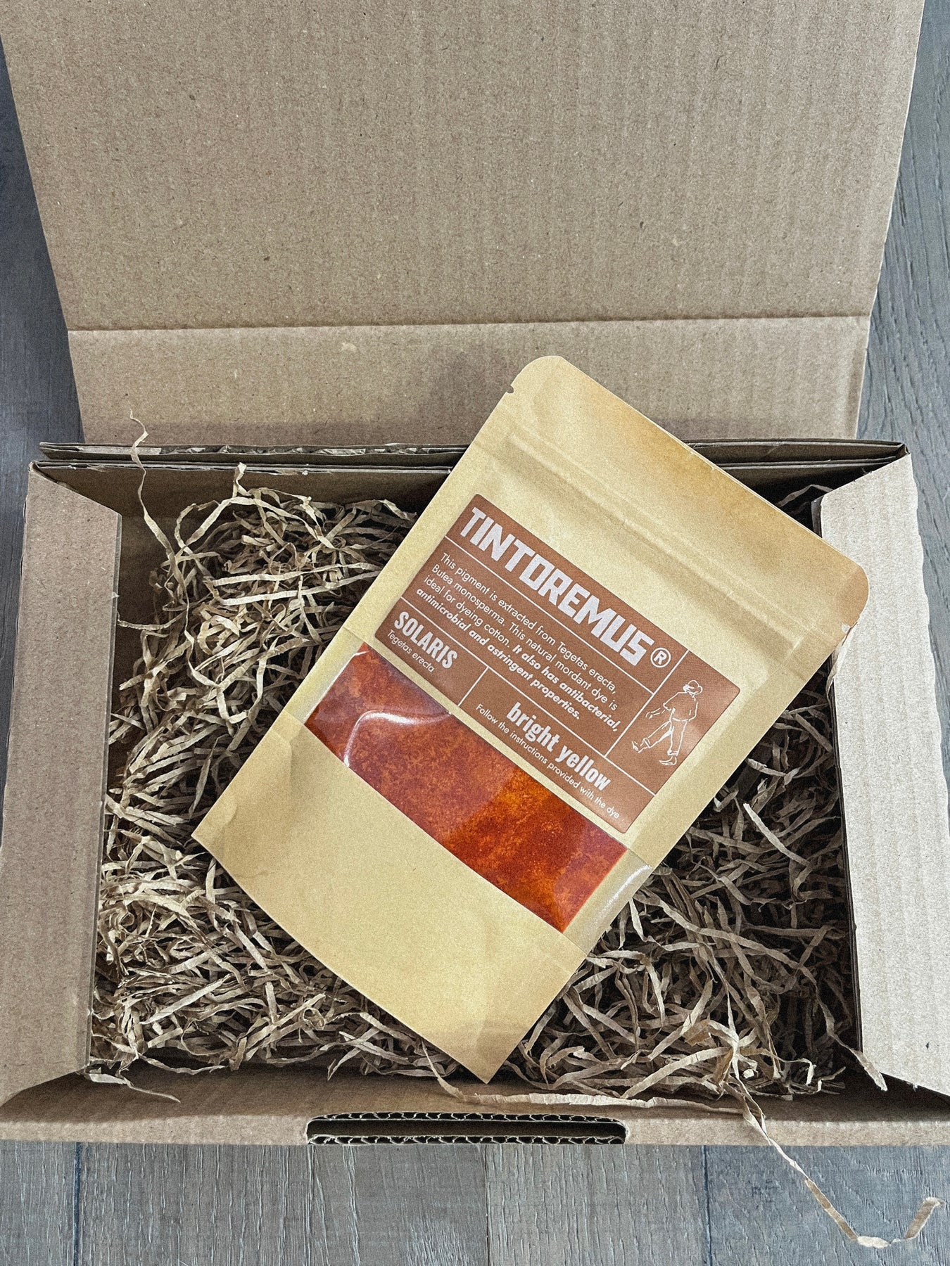 Este pack contiene los ingredientes (previamente medidos) para crear un tinte en olla. Todos los ingredientes para crear esta tina, son naturales.