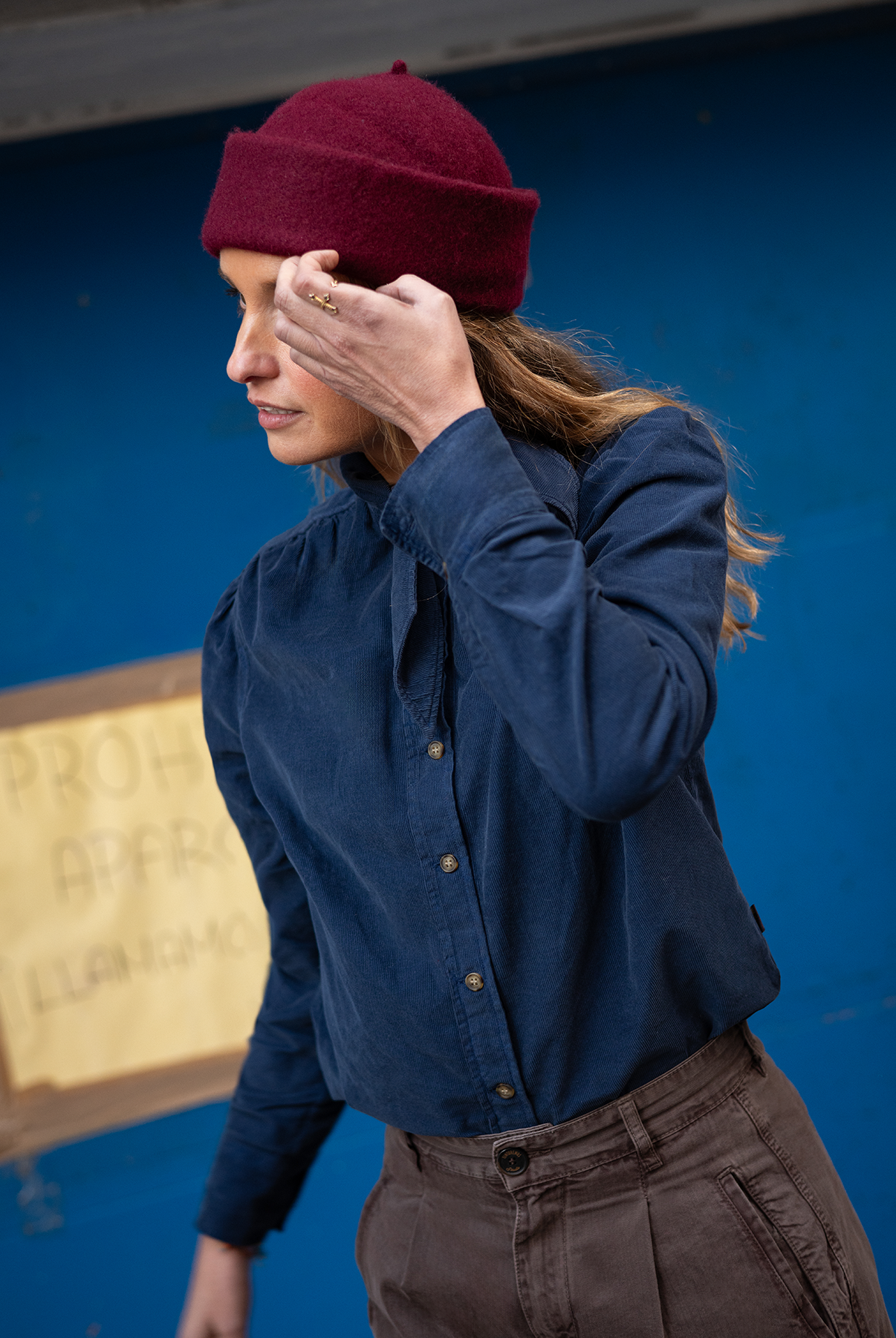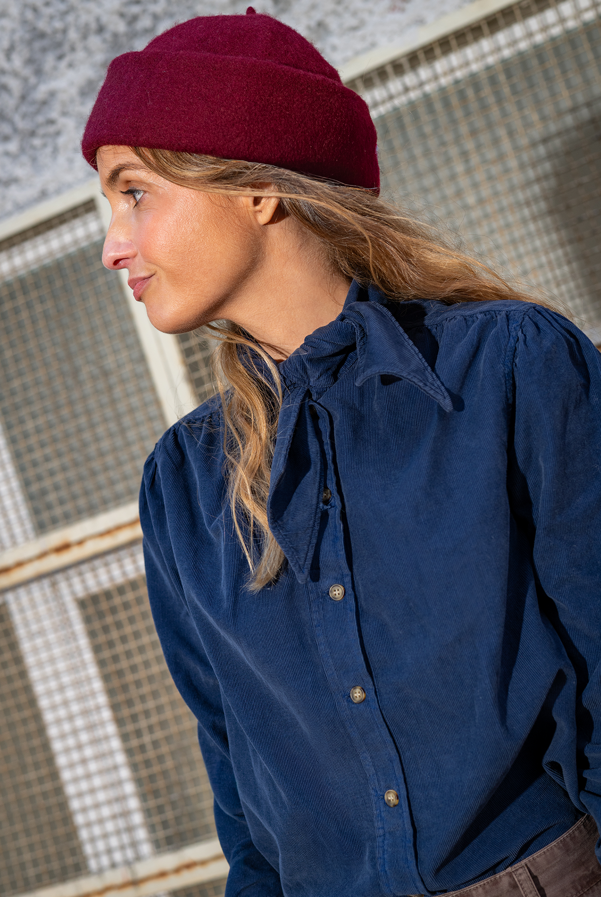 LARA, es una camisa con lazo alrededor del cuello hecha con 100% algodón orgánico.