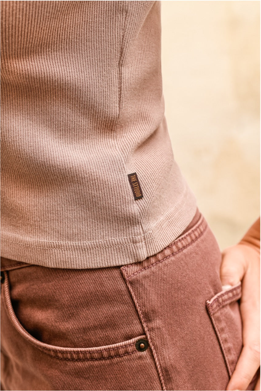 Teñida con tintes naturales, esta prenda utiliza pigmentos orgánicos extraídos de plantas, insectos y minerales, respetando las fibras naturales y evitando el uso de químicos derivados del petróleo.
