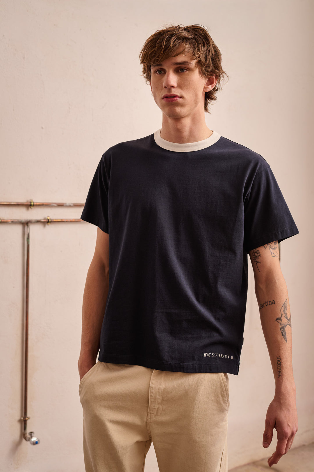Las camisetas y polos de punto índigo combinan con pantalón chino orgánico, con denim o con las sobrecamisas de la misma colección. Las sudaderas funcionan como capa intermedia en entretiempo y como pieza principal en los días más frescos.
