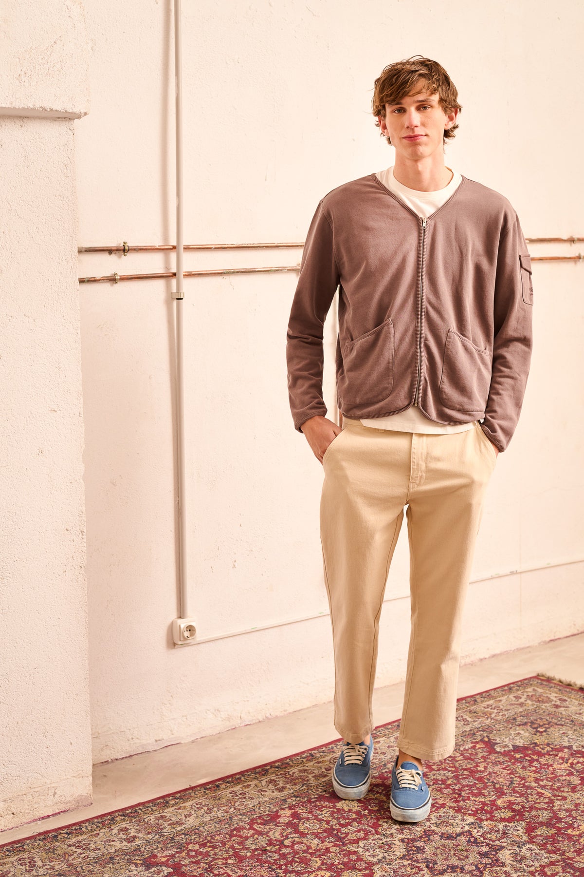 PETE, a zip-through sweatshirt made from 100% cotton with a relaxed fit.