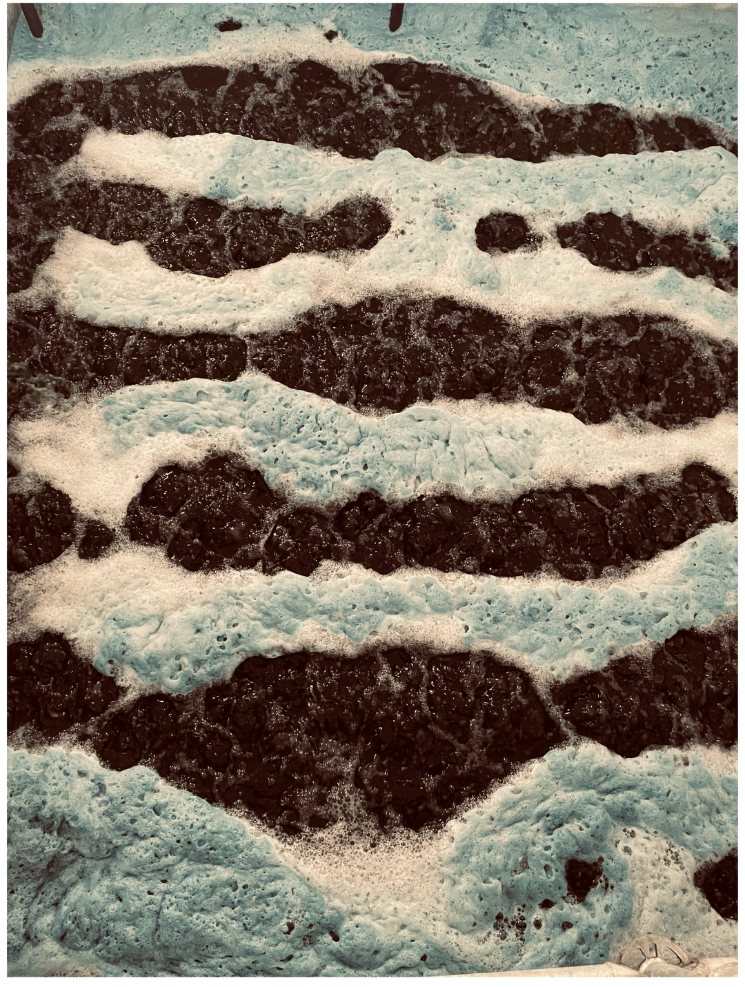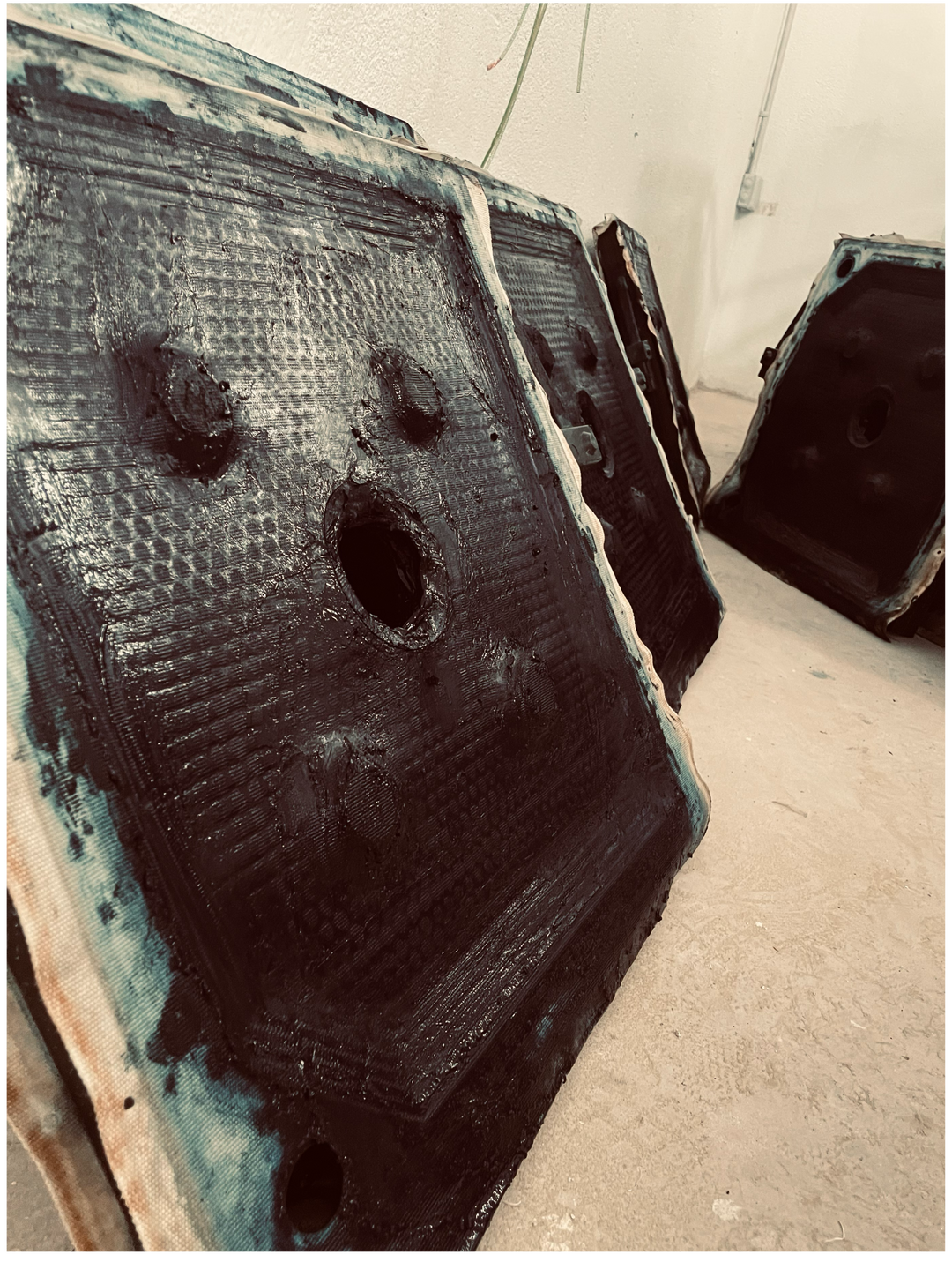 La mezcla (ya oxigenada) pasa de las piscinas de oxigenación a un proceso de filtrado. El objetivo del filtrado, es conseguir retener el pigmento y separarlo del agua sobrante. Después de todo el proceso y tras un periodo de secado, obtenemos el pigmento final.